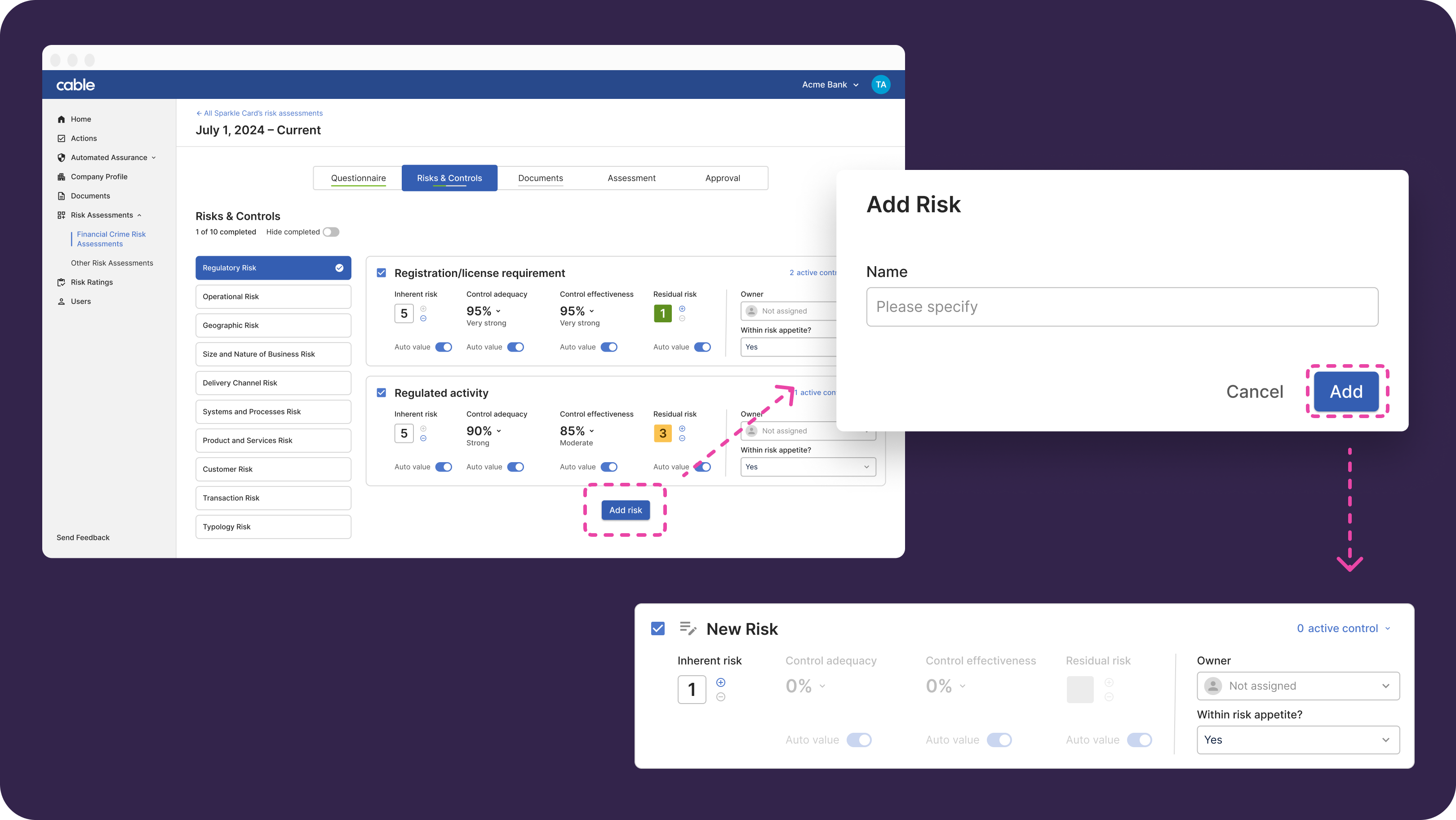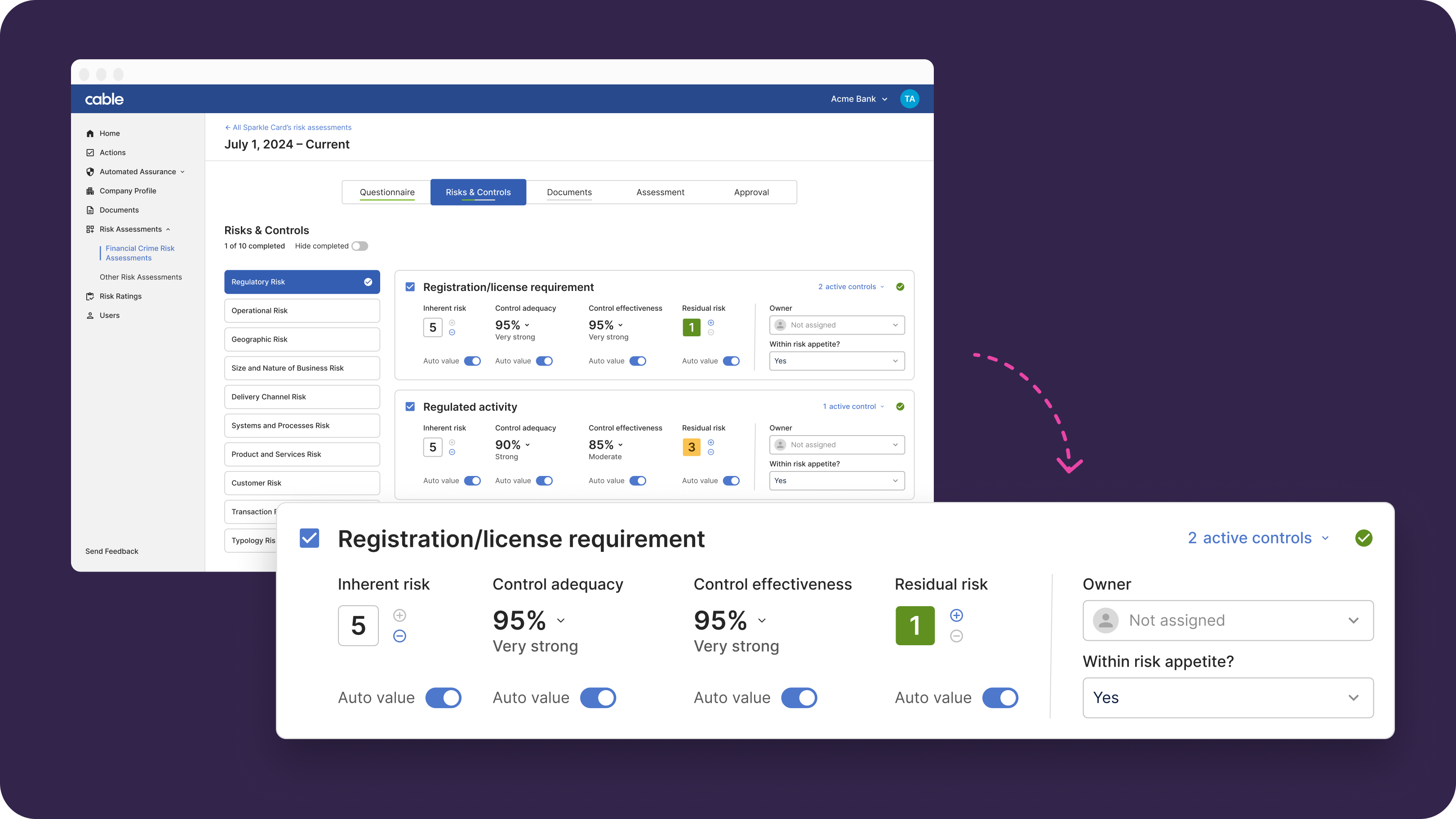 Please note that the effectiveness score is likely not yet available for your first risk assessment as you’re onboarding onto Cable until the Automated Assurance module is configured.