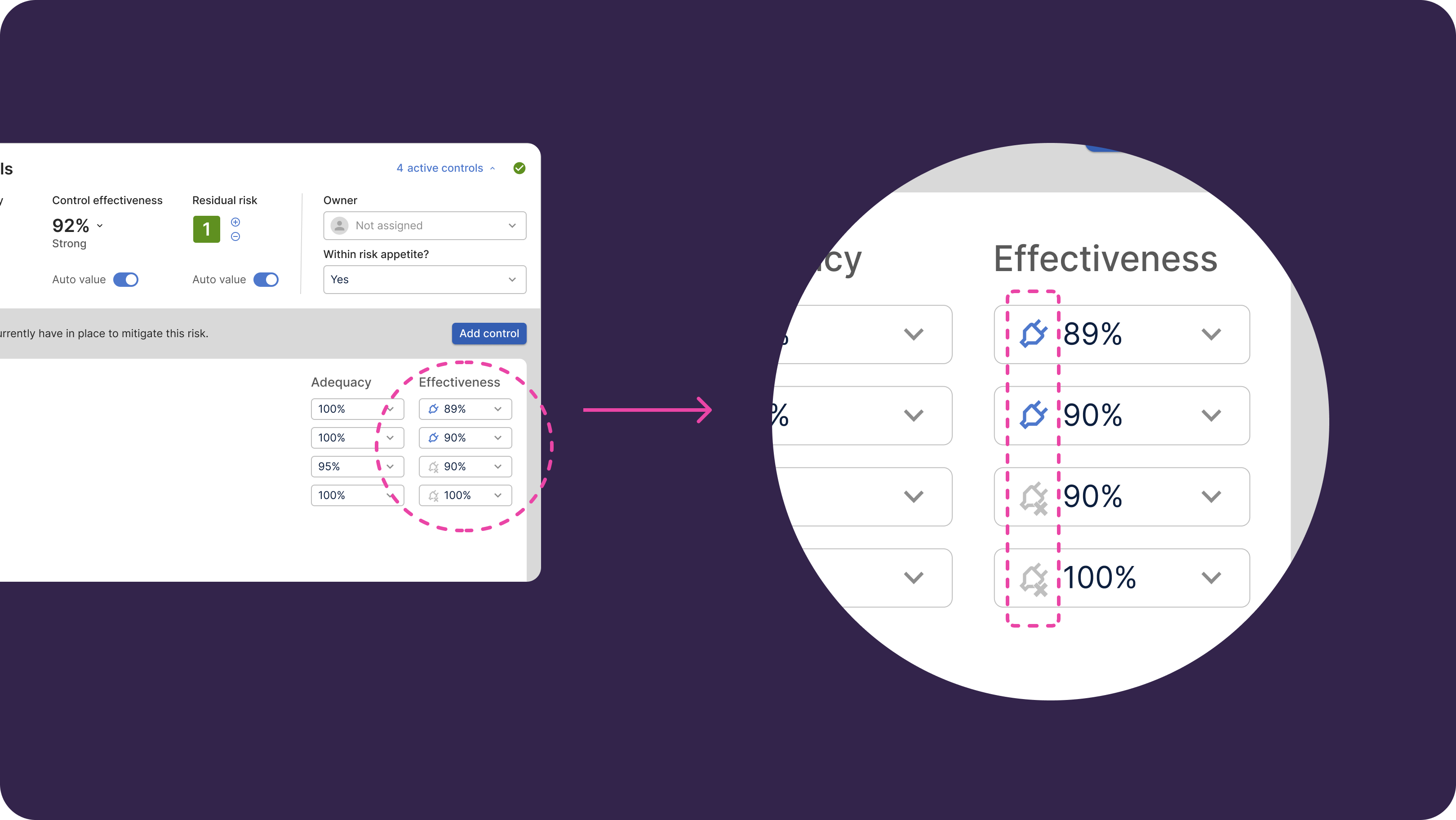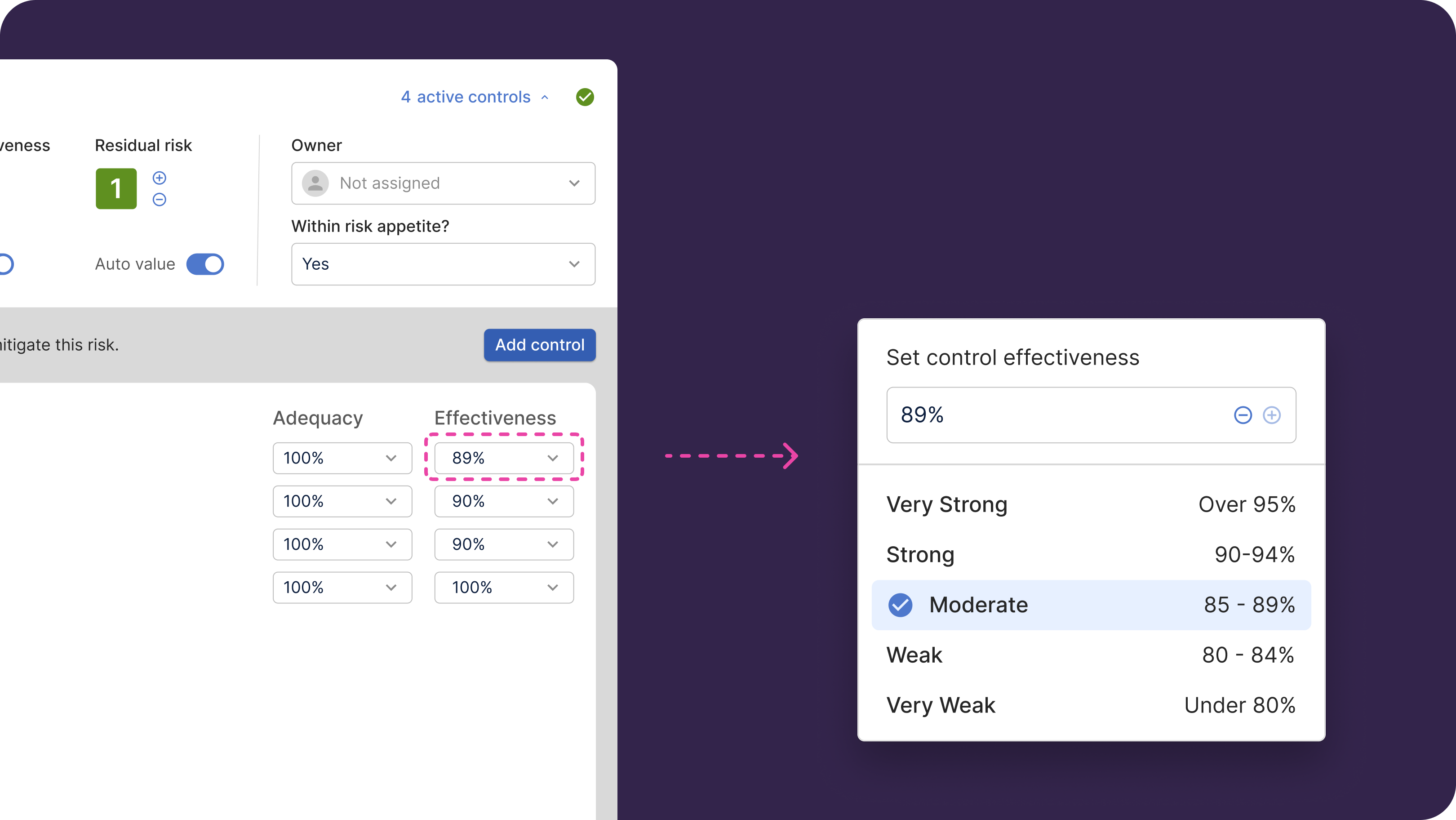 - For each control, set the Control Adequacy and Control Effectiveness scores.