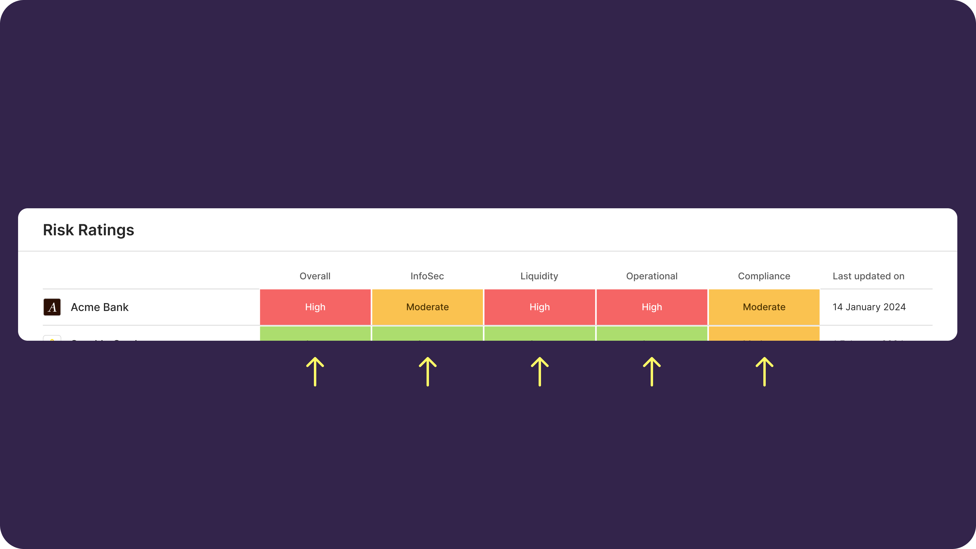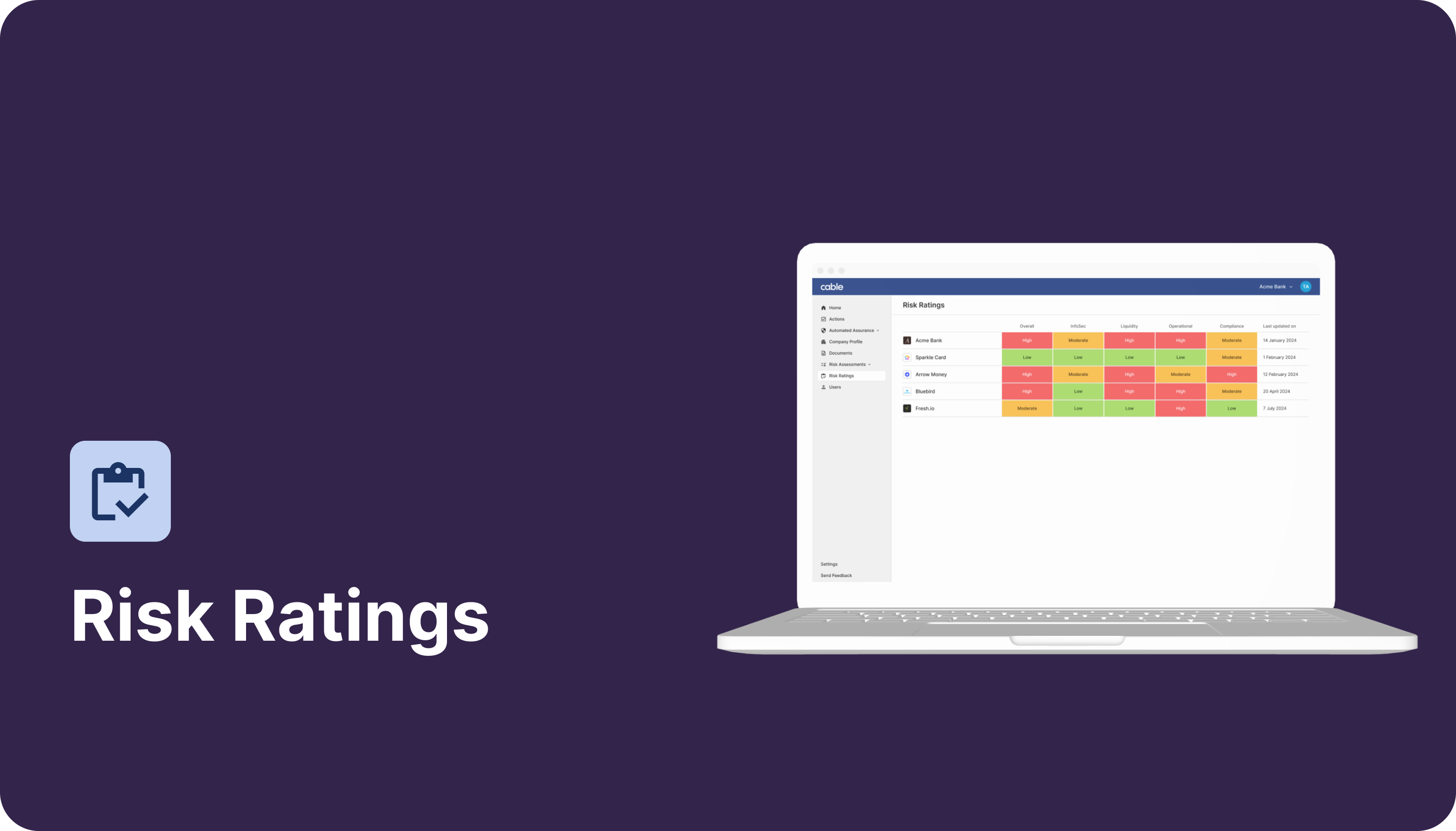 Key Risk Indicators (or “Risk Ratings”) are configurable. The screenshot shows some of our commonly recommended ones but you can customize any of the below: