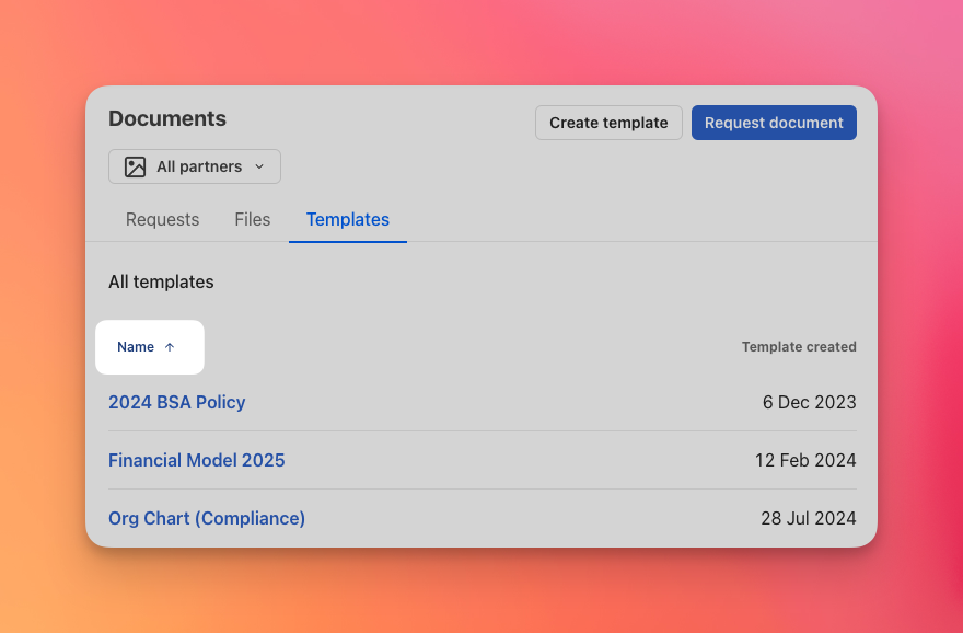 You can now sort your document request templates list alphabetically. This will make it easier to find the template you need when creating a new document request.